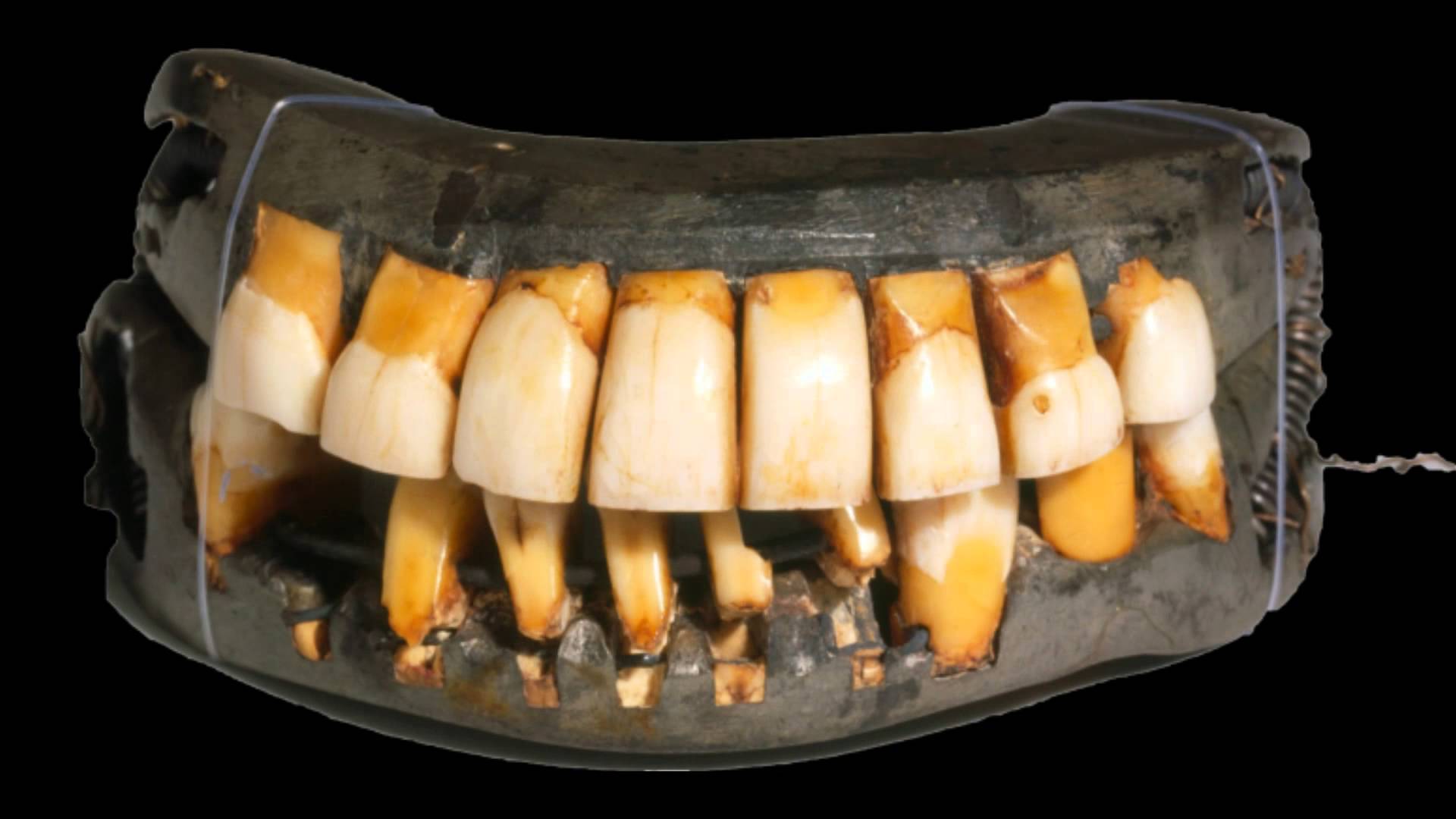 George Washington was known to have terrible teeth throughout his life but his dentures weren't wooden as many peope thought for years. He wore dentures made of ivory that were secured to his natural teeth with wire. Here they are!!