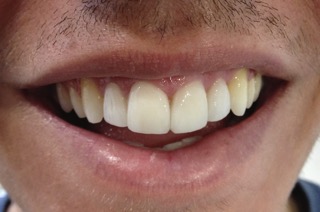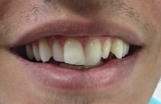 The "before" photos shows some mis-aligned teeth. The "after" photo shows the result after some tooth whitening and then 4 cosmetic veneers. Check out more great information and before and after photos on veneers here.